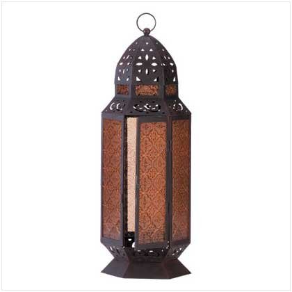 -. Title : Koehler Home Decor Gift Moroccan Glass Amber Panel Metal Candle Lantern 19"