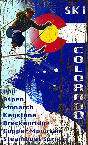 Old Vintage Signs "Ski Flag Colorado" Vintage Sign, 15-Inch by 26-Inch