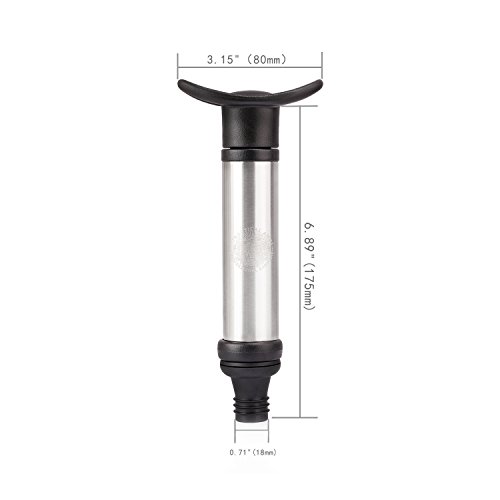 규격:타입:와인 악세사리 재료:스테인레스강&실리콘& ABS 컬러:실버&블랙크기:펌프:15.5cm(L)/6.10'' 스토퍼: 3.5cm(L)/1.38'' 팩키지의 상세: 1 * 진공 보틀 펌프 2 * 진공 보틀 스토퍼