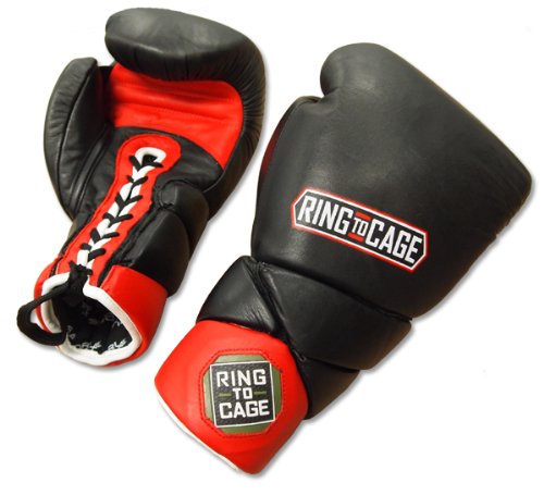 -. Binding : Misc. -. Brand : Ring to Cage -. Color : Black/Red -. Feature : Lace Track Boxing Gloves. / An excellent sparring glove of the best quality. / Snug fitting long cuff for optimal wrist support With 2.5" of protection over the knuckles. / Micro injected logo on the wrist. / Attached padded thumbs soft poly/nylon lining for quick drying. Lace-up -. IsAutographed : 0 -. IsMemorabilia : 0 -. Label : Ring to Cage -. Manufacturer : Ring to Cage -. PackageQuantity : 1 -. ProductGroup : Sports -. ProductTypeName : SPORTING_GOODS -. Publisher : Ring to Cage -. Studio : Ring to Cage -. Title : Big Hand Sparring Boxing Gloves - Lace up for Muay Thai, MMA, Kickboxing, Boxing-16oz