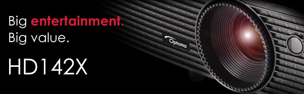 Screen Size Range: 66-inches from 8 feet; 107-inches from 12 feetBrightness: 3000 ANSI LumensContrast Ratio: 23,000:1; Keystone Correction: Yes, Lens Shift: NoWarranty: 1-Year Limited Parts and Labor, 90-Days on Lamp2 x HDMI (1.4a 3D support) + MHL v1.2, Audio Out 3.5mm, 12V trigger, 3D-Sync, USB serviceProduct DescriptionThe Optoma HD142X is a dynamic and cost-effective 1080p Home Theater Projector packed with an array of features including 3000 lumens, 1920 x 1080 FullHD Resolution, 1.1x Zoom, sRGB support, and 23,000:1 contrast ratio. The HD142X is the perfect Home Theater Projector for watching Blu-ray movies on movie night or Games of Thrones on a Sunday Evening. The 8000-hour lamp life leads to extended hours of viewing with limited need for maintenance and a lower overall cost-of-use without sacrificing outstanding picture quality. The HD142X is a great projector for gaming platforms including Xbox One, PS4, and your Personal Computer. The advance optical lens, crisp 1080p graphics and deep blacks produce detailed and vivid graphics and textures. sRGB color profile enables rich accurate color, based on the primaries of Rec.709 HDTV specification when used with a PC, Mac, or any sRGB compatible source. It features the latest and greatest digital media interface with support for MHL v1.2-enabled HDMI ports and is compatible with MHL devices such as Optoma’s HDCast Pro, Roku Streaming Stick and Smart Phones which connect directly to the projector to playback music and video, view pictures and even share web pages and other user generated digital media content.