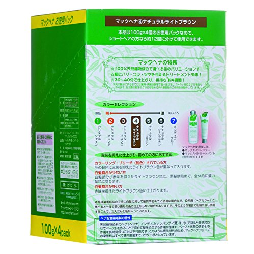 ヘアカラーリング剤にはそれぞれ一長一短があります。『マックヘナ』は、100%天然植物成分の染毛料ですから、ヘアカラーのように短時間で髪をしっかり染めたり、暗い髪を明るく染め上げることはできません。