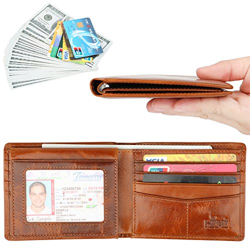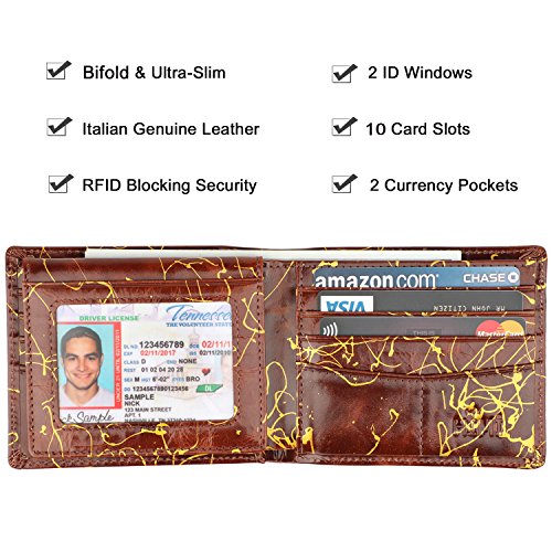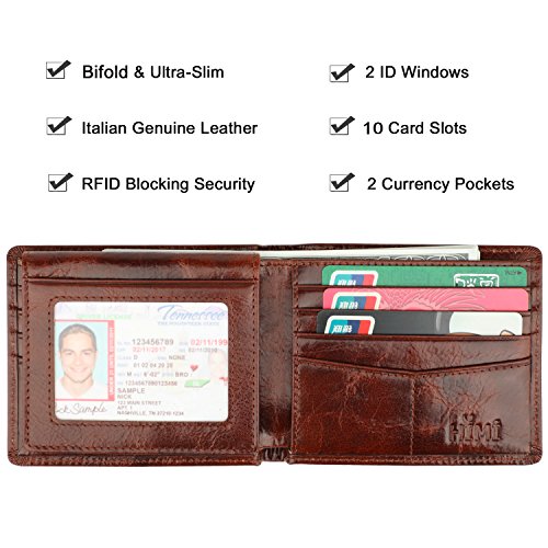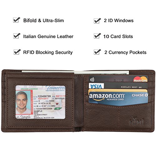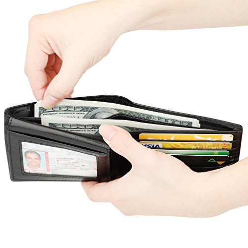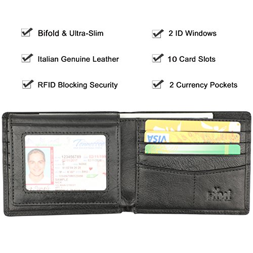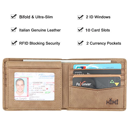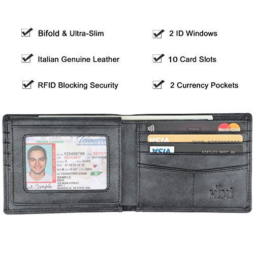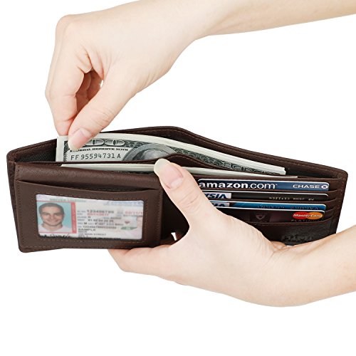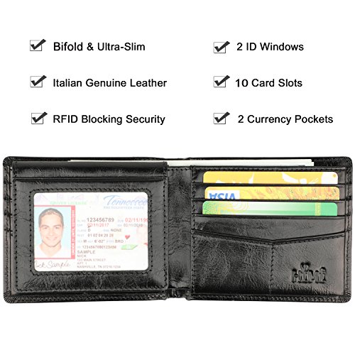 | Wallet for Men-Genuine Leather RFID Blocking Bifold Stylish Wallet With 2 ID Window |