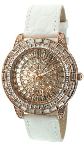 This Timepiece from Peugeot Couture is sure to be noticed when you wear it. Studded with all genuine Swarovski crystals on the case and dial, matched with a elegant White leather strap. Backed by Peugeot's Limited Lifetime Warranty.Feature