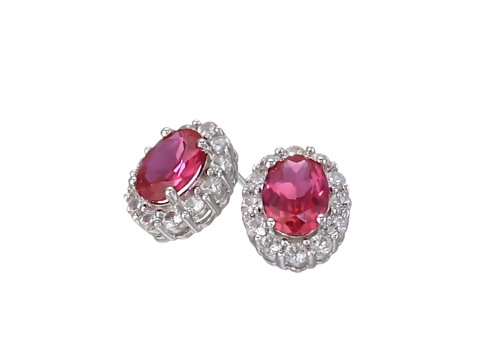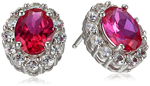 Sterling Silver, Cushion-Cut Created Ruby, and Created White Sapphire Stud Earrings