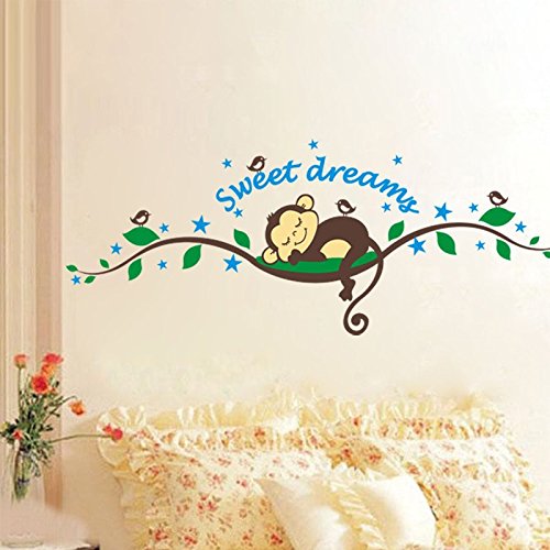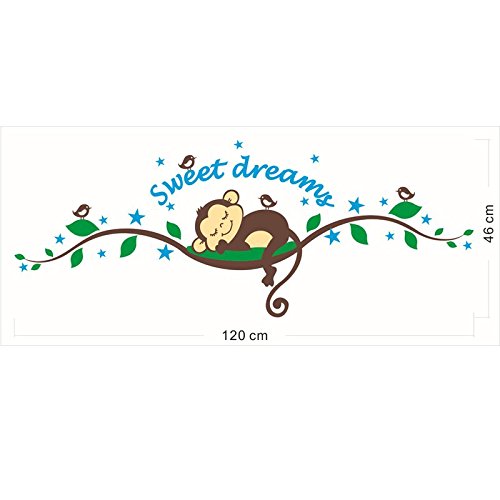 -. Title : Monkey Birds Forest Green Leaves Wall Decal PVC Home Sticker House Vinyl Paper Decoration WallPaper Living Room Bedroom Kitchen Art Picture DIY Murals Girls Boys kids Nursery Baby Playroom Decor