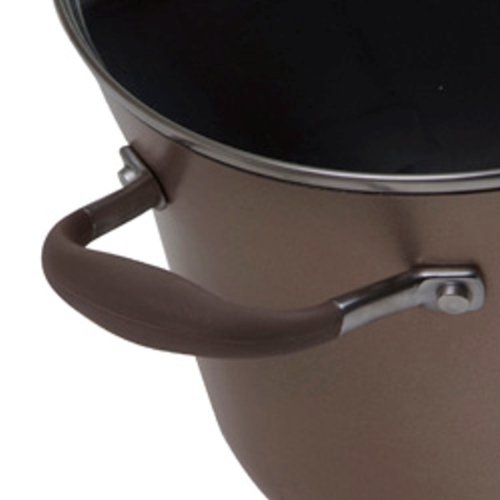 Metal utensil-safe Anolon Advanced Bronze features a stunning combination of shape and color. The sophisticated palette of warm bronze exterior coupled with deep chocolate interior is enhanced by its softly flared tulip-shaped profile. The collection's heavy gauge, hard-anodized construction ensures efficient, even heat distribution for exceptional gourmet cooking performance. DuPont??s rugged Autograph 2 nonstick surface inside is ideal for both healthy cooking and easy cleanup. Restaurant tested by professional chefs, Autograph 2 delivers superior durability that stands up to the rigors of a professional kitchen Revolutionary Anolon SureGrip handles, feature comfortable silicone rubber over durable stainless steel, providing a confident grip, that is also oven safe to 400 degrees Fahrenheit. The glass lids allow you to monitor food while it cooks without losing heat or moisture. This Anolon Advanced Bronze set offers a sophisticated look, professional performance and a wonderful variety of sizes and shapes that will complement every kitchen.