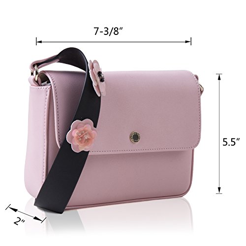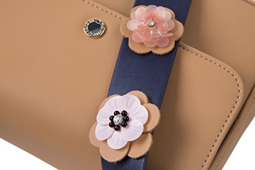 Product DescriptionFlap crossbody bag with strap in constract color and 2 flower decoration0
