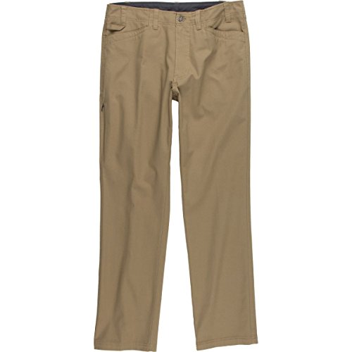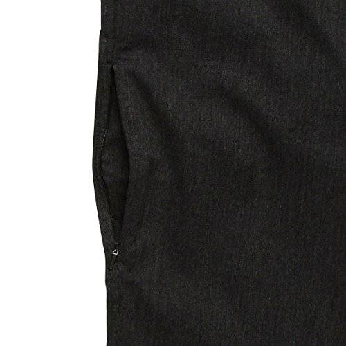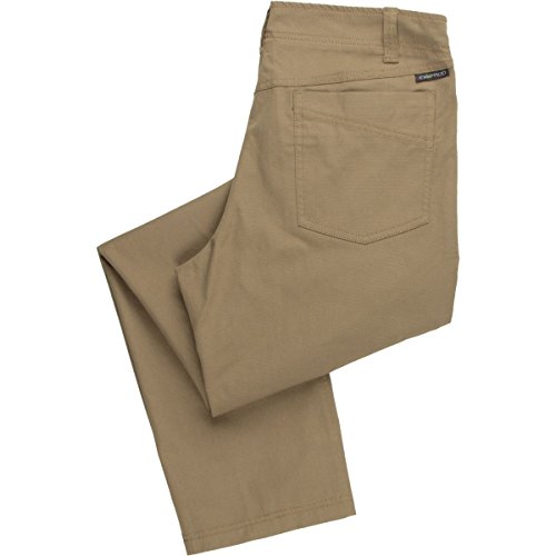 -. Feature : Material: 80% cotton, 18% polyester, 2% spandex, Teflon Shield + treatment / Inseam: 30 in, 32 in / Pockets: 2 slash hand, 1 zippered security, 1 zippered back, 1 internal security / Waist: tricot lined, belt loops, button / Fly: zipper