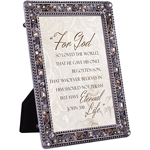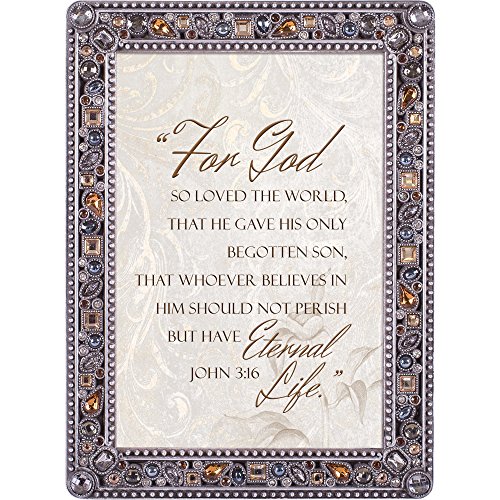 For God so Loved the World Jeweled Pewter Finish 4x6 Photo Frame Plaque