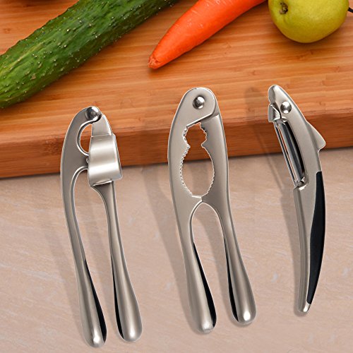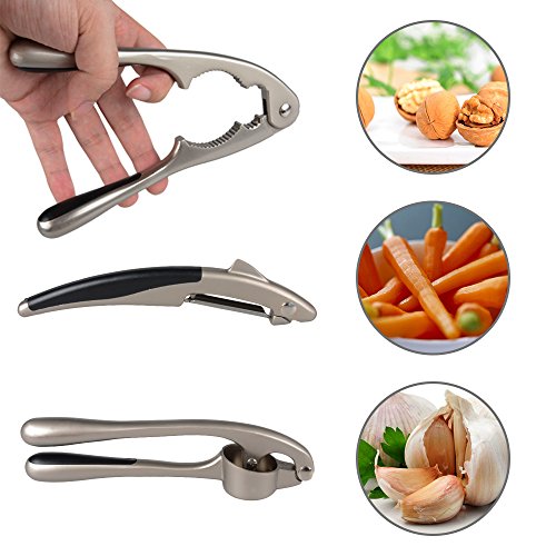 3 Pcs kitchen gadget set Garlic Press , nut Cracker and swivel Peeler will be good tools for your kitchen time