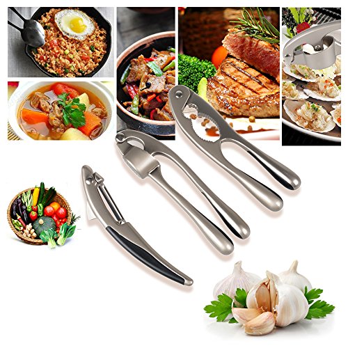 Specification Material:Zinc alloy Color:Silver Package: 1Pcs garlic press 1 Pcs nut Cracker 1 Pcs swivel Peeler If you have any question , please feel free to contact us , we will reply asap 0
