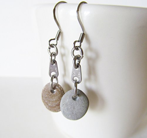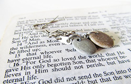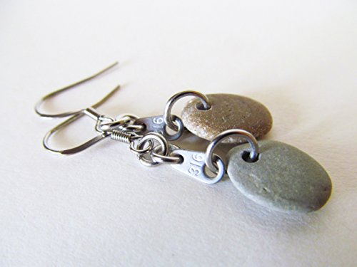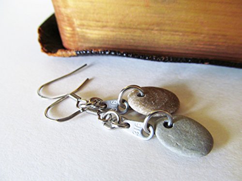 -. Title : Beach Stone Earrings, Lake Michigan, Tiny Stainless Steel 316 Tags, Stainless Steel Fish-Hook Earrings, JOHN 3:16