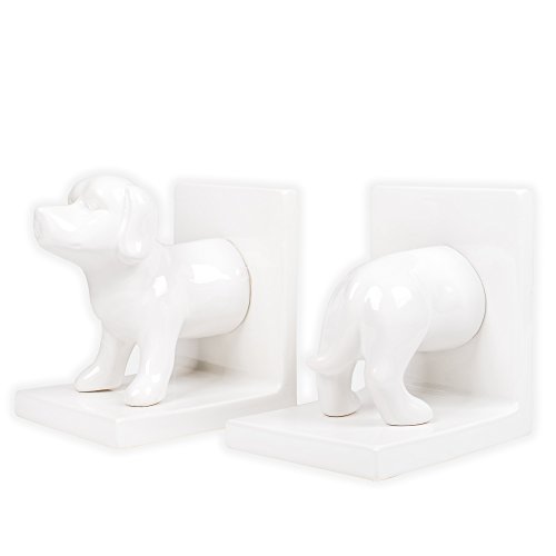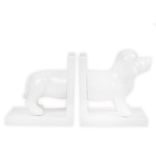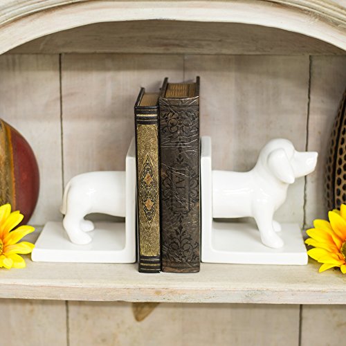 White Ceramic Dachshund Decorative Bookends
