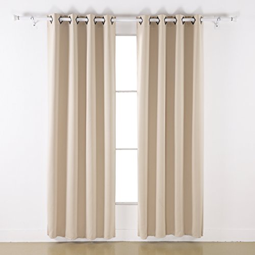 1. There are 8 Square Grommets on each Panel. 2. Size:Each color have three Size,52 Inch By 63 Inch,52 Inch By 84 Inch,52 Inch By 95 Inch 3. Bring warmth and style to your home with high-quality insulated Blackout window curtain pairFeature