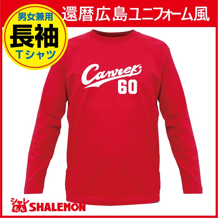赤といえば還暦、赤といえば広島カープ! だったら、広島ファン専用の還暦祝いを作るんじゃけん!と言わんばかりに社長が暴走してデザインしました! あっ!で、でも、よく見ると… 社長!還暦のアルファベットの最初の文字が「C」になってますっ!!本来ならKanrekiなので「K」なのではないでしょうか…? 【社長】ばかやろー!Kから始まったらカープに見えねえんだよ!カープをパクってんのにKから始めるバカがおるか!キャンレキ祝いって言っとけばいいんだよ! ・・・・・・・ すいません…うちの社長は頑固なもんですから… このTシャツをお祝いで贈る際は、キャンレキ祝いって言ってお渡しください(笑)他にも還暦商品が数十種ありますので、当店シャレもんの還暦コーナーをご覧ください。