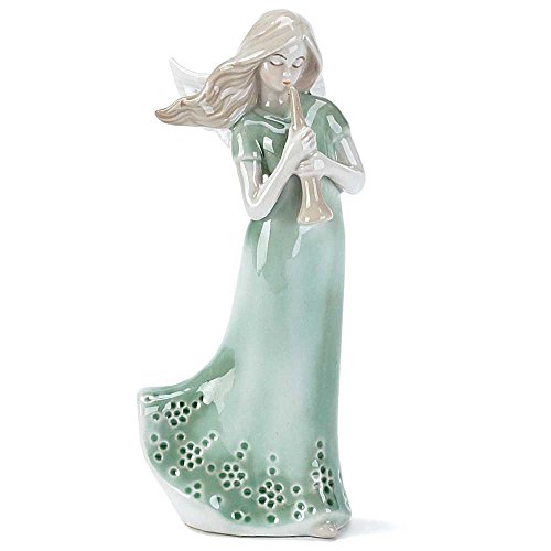 Blonde Girl Angel with Trumpet Instrument 6 x 3 inch Porcelain Table Top Figurine