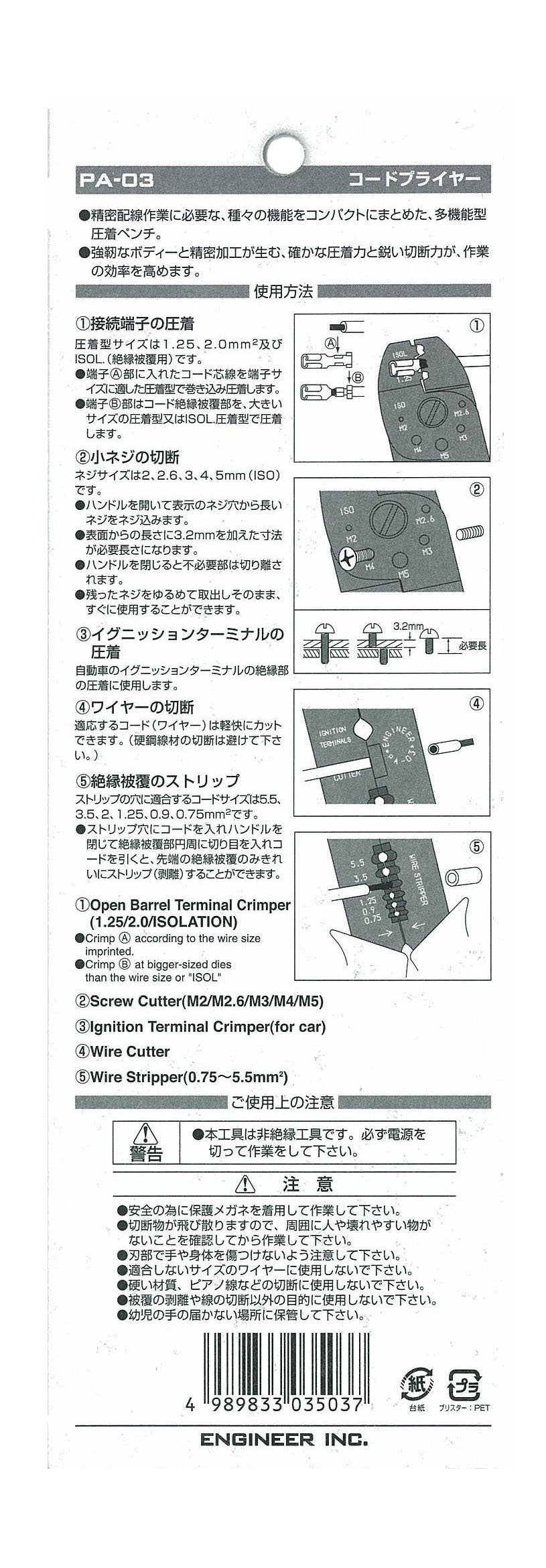 ● Multifunctional crimping pliers with compact summary of various functions necessary for precision wiring work
