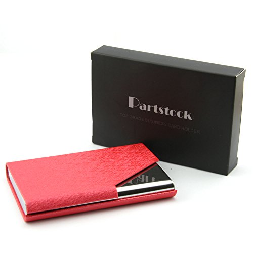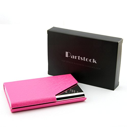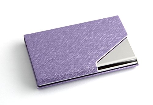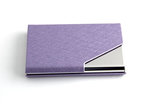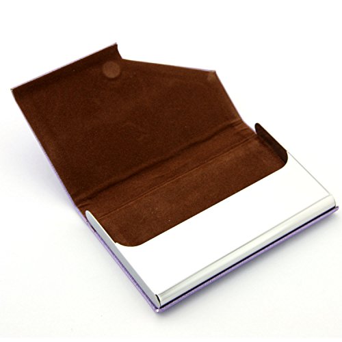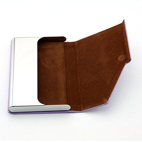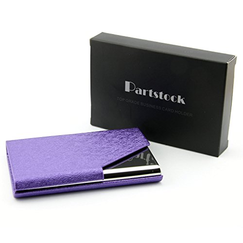 Partstock(TM) Ladys New Style Cross Pattern PU Leather and Stainless steel Business Name Card Holder Wallet Leather Credit card ID Case / Holder 25 Name Cards Case with Magnetic Shut.(Purple)