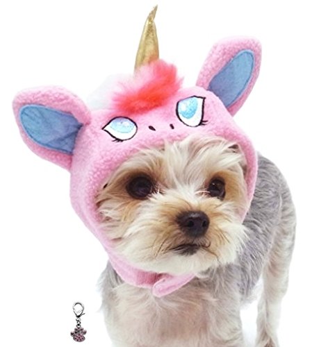 -. Feature : Plush Faux Fur Character Themed Hats with Charm for Dogs - Asssorted Characters - in Dog Sizes XS thru XL / High quality tailored hat features include embroidered appliqued eyes, 3D nose, and stuffed ears, and includes clip on paw charm accessory. / Thick plush hat stays on even when shook, and keeps pet's head and ears warm and dry in cold or inclement weather. Adjustable chin straps with heavy duty hook and loop closure for stability and keeping hat on pet's head. / Makes an adorable Gift. Everyday use for walks, playtime, outdoors, parties, holidays or as a costume. Wear alone or with other clothing. / Choice of: Panda, Mouse, Donkey, Frog Prince, Pink or Blue Unicorn. Measure pet in a Vertical Circle from top of head to neckline and back to top of head (view chart for photo guide) Sizes (XS fits 10"-11") (Small fits 11.5"-13") (Medium fits 13.5"-15.5") (Large fits 15"-18") (XL fits 19-22")
