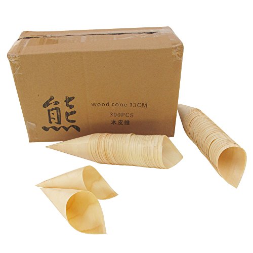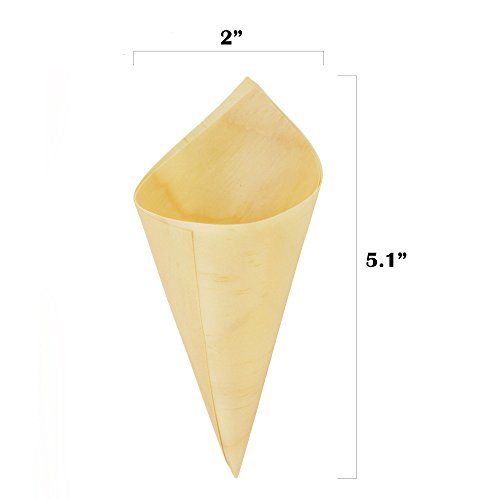 BambooMN Brand - 5.1" Tall x 2" Dia Disposable Wood Cones - 100 Pieces