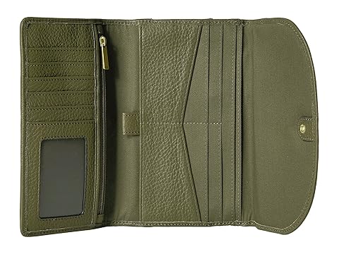 SKU: #9027890 Add an earthy element to your accessory collection with the Fossil® Sophia wallet. Made of leather with woven detail. Snap closure. Signature logo detail in front. Lining made of textile. Exterior zip pocket. Three interior slip pockets. Eleven credit card slots with ID window. Imported. Measurements: Middle Width: 7 1?2 in Depth: 3?4 in Height: 5 1?4 in Strap Length: 53 in Strap Drop: 23 1?2 in Weight: 9.5 oz |