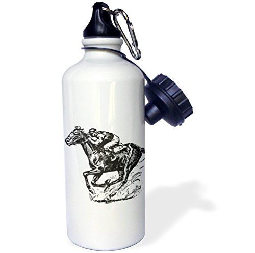 3DROSE WB_26013_1 JOCKY AND HORSE RACING SPORTS WATER BOTTLE, 21 OZ, WHITE