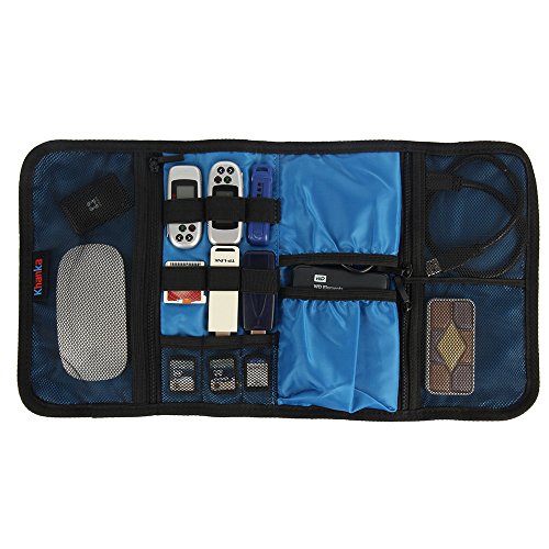 - Feature : Made of heavy-duty, durable and water-resistant nylon / 6 elastic loops to hold various items like cables, flash disk and etc / 3 Easy access mesh pockets expand to store multiple sizes of USB hard drive or small baby stuffs / Special zipper spaces for 2.5 Inch external hard drive (HDD), SSD cards, CF cards, power bank or baby diapers and etc / An attached drawstring to secure the wrap-up bag.
