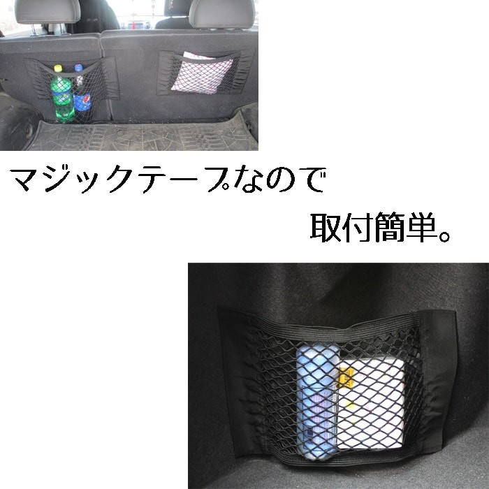 送料無料でお届けネットタイプなので中身が見えて便利。たっぷり使える2個セットです。 マジックテープで取付簡単、収納ネット。 面ファスナーなのでラゲッジスペースの荷物をしっかり固定できます。 車内を整理整頓できるトランクネットです。 散乱している小物を、デッドスペースを使って整理しましょう。 サイズ(約):25cm x 37cm