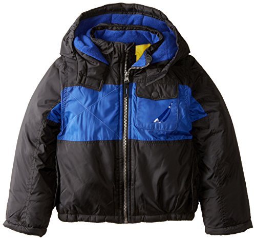 Nautica Little Boys' Toddler' Colorblock Puffer Coat, Black, 2T