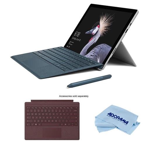 -. Feature : Surface Pro - Power supply - Quick Start Guide - Safety and warranty documents - Warranty 1-year limited hardware warranty - Bundle includes: - Microsoft Surface Pro Signature Type Cover Burgundy - Microfiber Cloth / The most versatile laptop: Better than ever, the new Surface Pro gives you a best-in-class laptop, plus the versatility of a studio and tablet. The stunning PixelSense Display supports Surface Pen and touch, while up to 13.5 hours of battery life gives you plenty of juice to work all day and play all night / Uncompromising mobility: Create, study, work, and play virtually anywhere. The ultra-light Surface Pro gives you the ultimate in mobile productivity, all-day battery life, plus a softer, ultraportable design with rounded edges. / Surface Pro delivers even more speed and performance: Thanks to a powerful Intel Core processor that runs full desktop apps with ease plus 50% more battery life and 50% more performance than Surface Pro 4. Bring your ideas to life in brilliant color on the high-resolution PixelSense Display with a stunning screen that responds to your touch. / The best of Microsoft at your fingertips: Choose the laptop that works perfectly with Surface Pen, Surface Dial, and Office, and runs the full Windows experience, including 3D creation tools. Enjoy fast, secured, password-free sign-in with Windows Hello.