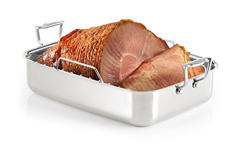 Large 11-by-16-inch roasting pan with removable V-shaped stainless steel roasting rack