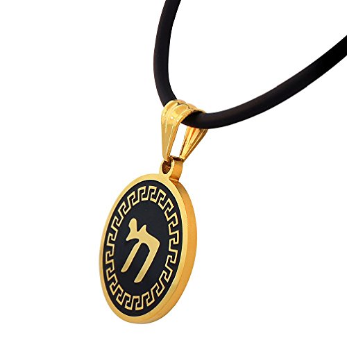 -. Binding : Jewelry -. Brand : Anguss Fashion Jewelry -. Department : girls -. Feature : Length (inches):24 / The stainless steel jewelry is a perfect gift. This necklace is crafted of durable highly polished 100% stainless steel. Give it to the loved one or treat yourself for a trendy style. The necklace features a yellow gold-tone abd black Chai charm. The pendant is accented with the familiar Greek Key pattern. The durable black cord chain measures 24.00in long and features a lobster claw type of clasp that allows to lock the jewelry securely around your neck. -. Label : Anguss -. Manufacturer : Anguss -. Model : 271796226534 -. MPN : 271796226534 -. PartNumber : 271796226534 -. ProductGroup : Jewelry -. ProductTypeName : FASHIONNECKLACEBRACELETANKLET -. Publisher : Anguss -. Studio : Anguss -. Title : Stainless Steel Gold Tone Black Greek Key Jewish Chai Mens Boys Pendant Necklace