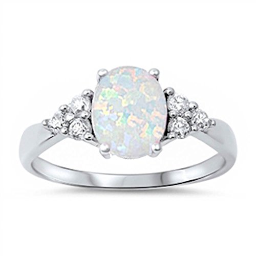 -. Feature : .925 Sterling Silver / Top Quality / Lab created Australian Opal / 3.4 Grams / White Opal Stone 8x7mm, CZ 2x2mm