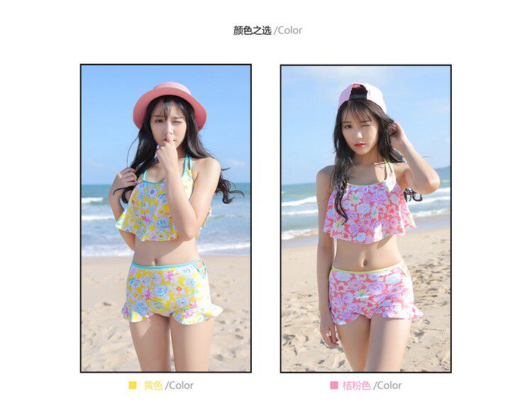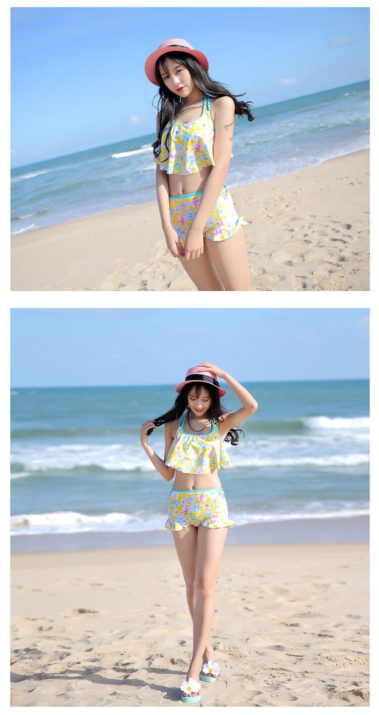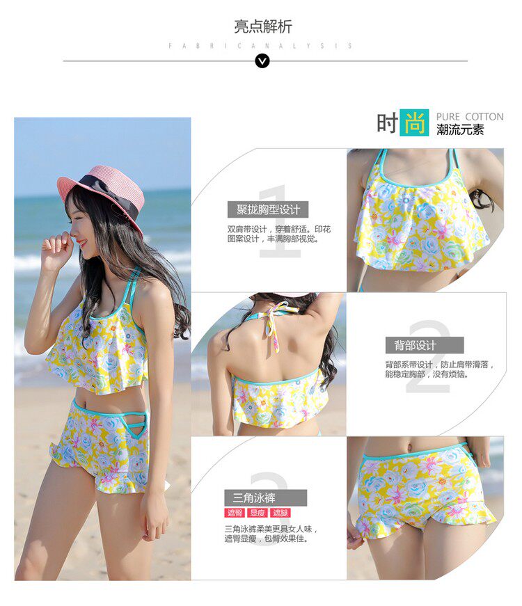 泳衣女平角裤学生甜美比基尼小胸聚拢保守温泉沙滩泳装