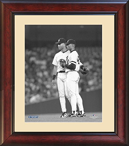 Derek Jeter 'Talking with Mariano Rivera On The Mound Black and White in 1996' 8x10 Framed Photo