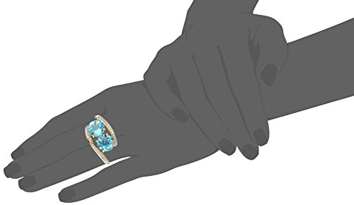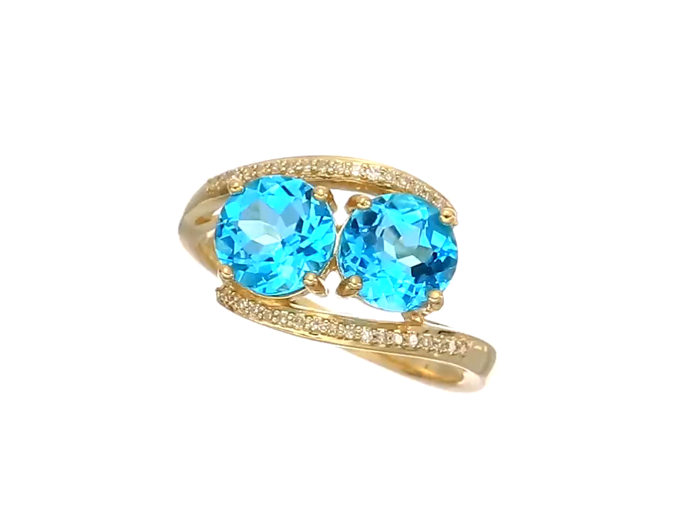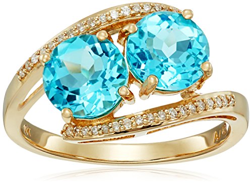 10k Yellow Gold Two Stone Swiss Blue Topaz with Diamond Accent Ring, Size 7