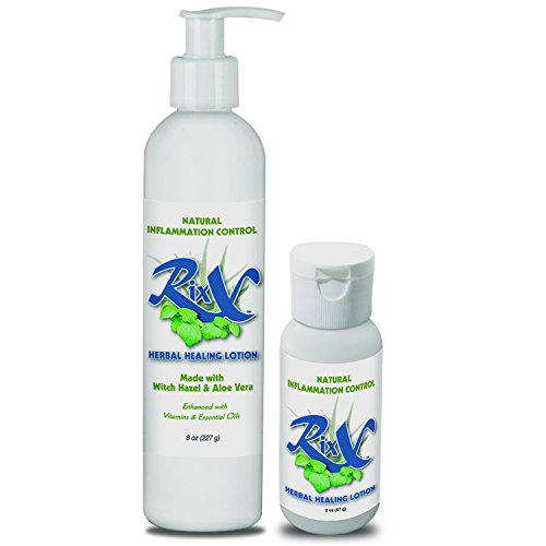 -. Feature : Witch hazel and Aloe Vera plus Omega 3 from h.e.m.p seed oil. Contains hyaluronic acid. / Infused with anti-oxidants, vitamins A, E and B5. Non-medicinal, light, fresh scent from essential oils / Rixx Lotion offers inflammation control and moisturizing. Smooth, not greasy. Penetrates fast. Gentle enough to use on your face, eye makeup remover. With shea butter. / Reported effective for use on muscle and joint pain & swelling. Also for itching, cramping & sunburn. Effective for conditions of rashes, Osood Schlatters, knee & shoulder surgeries knee and joint related conditions. Neck & back aches and torn muscles have responded with relief. Used by chiropractors and massage therapists for relaxation P.R.Ior to body treatments. / Proudly Made in the USA in Mesa, AZ | Gluten and Paraben Free and Vegan Friendly