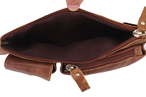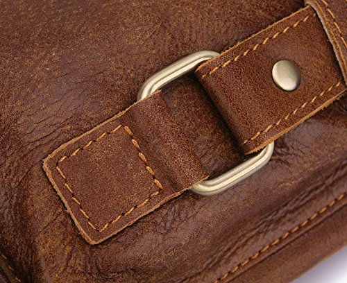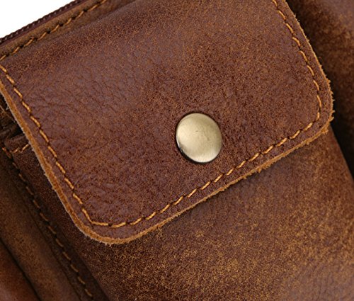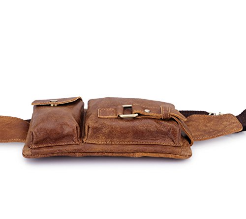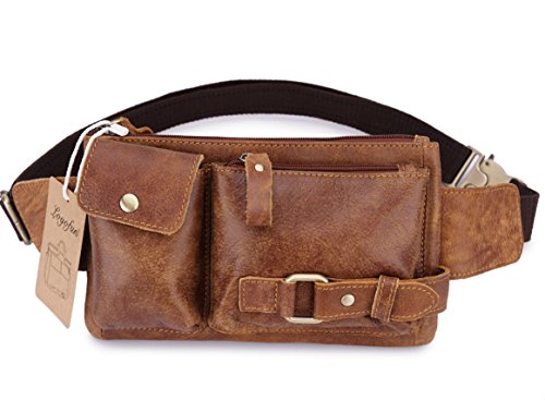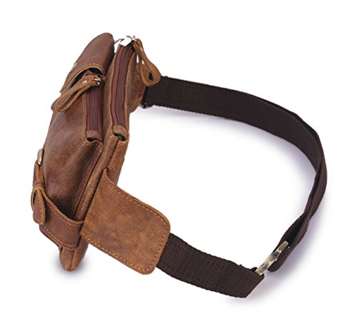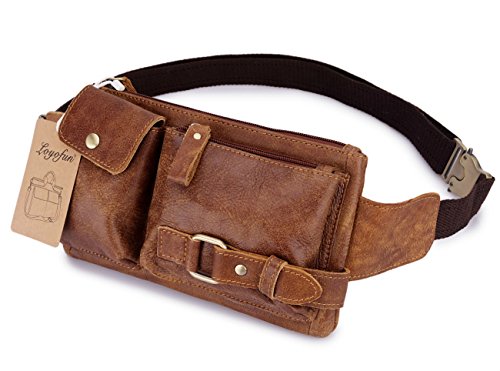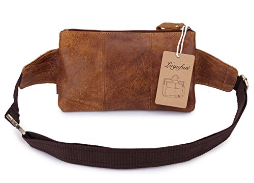 -. Title : Loyofun Brown Genuine Leather Waist Bag Messenger Fanny Pack Bum Bag