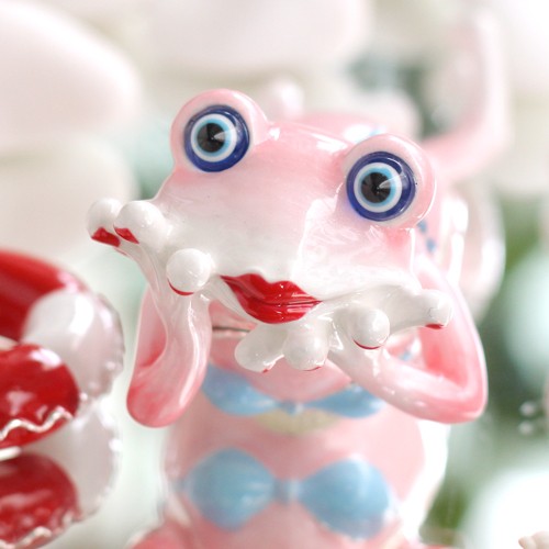 | ジュエリーボックスと言えば、指輪やピアス、ネックレスなどのアクセサリーを入れる引き出し型のケースを思い浮かべる方が多いかもしれません。 ピィアースのジュエリーボックスは、動物や花などをモチーフに作られ、合金製でずっしりとした重さがあります。また高品質のクリスタルガラスを贅沢に使用。まるでジュエリーボックスそのものが宝石のような、高級感溢れる仕上がりです。 小物入れとしても使えるように開閉口には磁石が取り付けてあり、アクセサリーなどなくしやすいアイテムの収納ができます。キラキラと美しく輝く宝石箱は、そのまま飾って楽しめるインテリア雑貨として多くの方に愛されています。 国内トップクラスのジュエリーボックスメーカーであるピィアースは、2004年ごろから本格的に宝石箱の製造を始め、現在のジュエリーボックスはなんと300種類以上。大規模展示会でもご好評いただいており、全国有名百貨店でも販売されています。 自社工場でひとつひとつ丁寧に手作りし、原型作成、研磨、加工、着色、小さなクリスタルガラスの取り付けなども全て手作業で行われるこだわりのハンドメイド品。完成後は厳しい検品の後、丁寧に梱包作業をしお客様にお届けしております。 ピィアース商品は、全国有名百貨店および全国有名宝石店チェーンにてお取り扱いいただいている高品質商品です。 ★自分へのご褒美に…コレクションして並べて飾ると、さらにかわいらしさUP! ★恋人へのプレゼント…中にアクセサリーを入れて、サプライズな贈り物として ★家族への感謝ギフト…お母さんや姉妹へ、日頃のありがとうの気持ちを込めて ★誕生日プレゼント…お友達の喜ぶ顔が見たいから、いつもと違うキラキラギフトを ★小さな女の子へ…まるでお姫様が使っているようなキラキラ宝石箱は女の子の憧れ! |