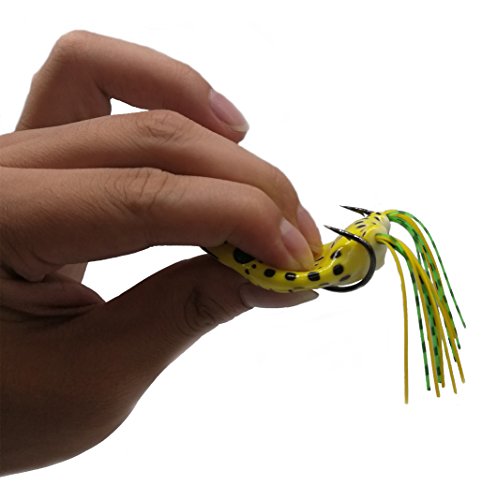 -. Feature : 1.Body is structured enough to keep the bait 100% weedless to come over and across sloppy weedbeds. / 2.Flow-through design and interior weighting system keeps it from sinking or snagging, ensures solid hookups. / 3.Our Topwater frog Lures features vivid swimming action,sharp hooks,which makes it the powerful fishing catching seduction. / 4.Topwater frog Lures Net Weight per piece: 14g/ 0.42oz; Length: 6cm/ 2.36in; Packed in plastic box with 10 pieces easy to stow and transport. / 5.Each Topwater frog Lures comes with 2 sharp hooks!Comes with double barb hooks and spinner sequins design, very high quality and good fishing effect.Related Searches:topwater frog,topwater lures,frog bait,frog lures,frog lures for bass popper