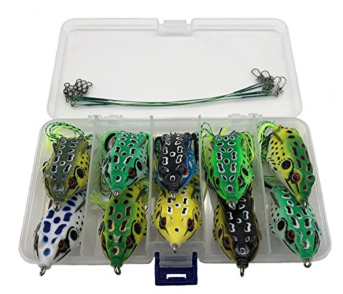 -. Title : 10PCS Topwater Frog Lures Kit,InnoFun Frog Lures Bait Set Lots for Bass Trout Salmon with 5PCS Fishing Leaders,Free Tackle Box