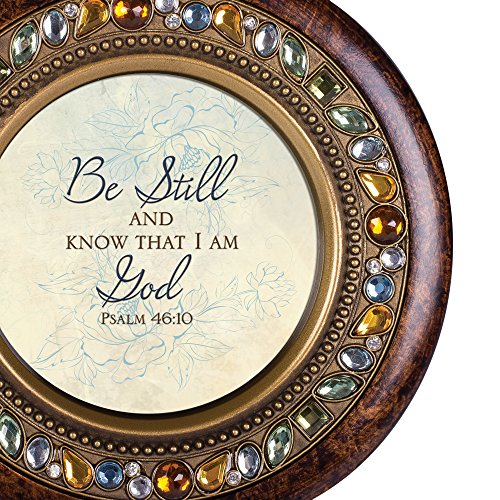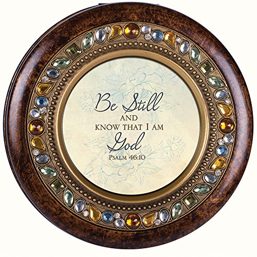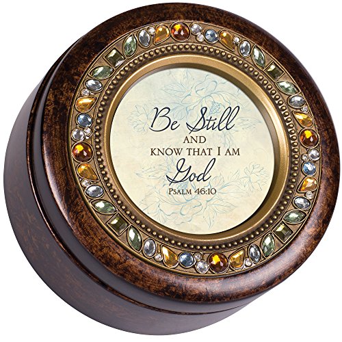Be Still And Know I am God Burlwood Finish Round Jeweled Music Box Plays Tune How Great Thou Art