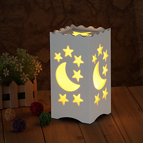 Soft and sweet warm-white light, unique moon and star shaped carving and exquisite hollow carved style make this accent lamp look attractive, romantic, and perfect for living room, bedroom, study room, and dormitory.