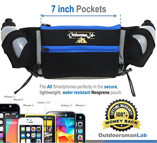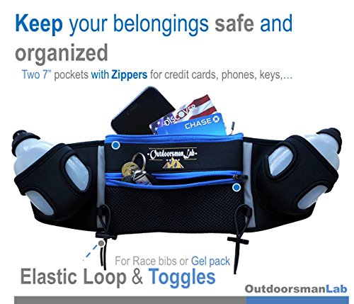 NO POCKET IN YOUR RUNNING SHORTS? No problem. This running hydration belt has two 7" pockets that fit all smart phones (even iPhone 6 plus), ID, keys. Top-opening zipper makes storing and retrieving you valuables easy and secure.