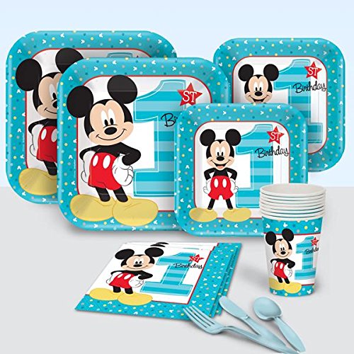 -. Feature : Mickey's Fun To Be One Basic Pack Includes - / 8 Dinner & Dessert Plates / 8 - 9 oz Hot/Cold Cups & 16 Luncheon Napkins / 24 Pack of Blue Plastic Cutlery (8 Forks, 8 Knives, 8 Spoons) / 1 White Plastic Table Cover - Measures 54" wide x 108" long with a thickness of 4.5 millimeters