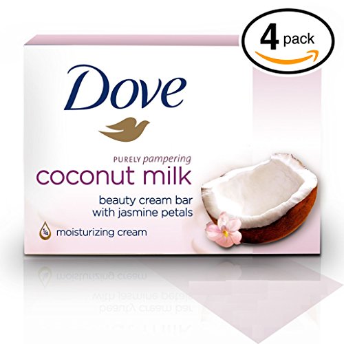 (PACK OF 4 BARS) Dove Unscented Beauty Soap Bar: COCONUT MILK. Hypo-Allergenic & Fragrance Free. 25% MOISTURIZING LOTION & CREAM! Great for Hands, Face & Body! (4 Bars, 3.5oz Each Bar)