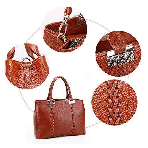 STUNNING APPEARANCE---Gorgeous look and never out of style! 1. Handles are durable with excellent bearing capacity, Cow split leather material guarantees the quality!. 2. Fashion woven design on surface which to show women's fashion and elegant.