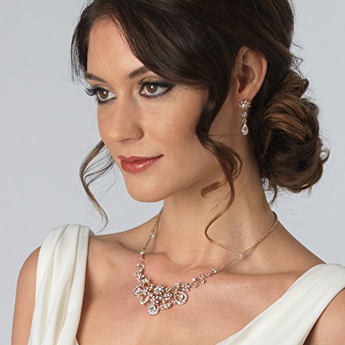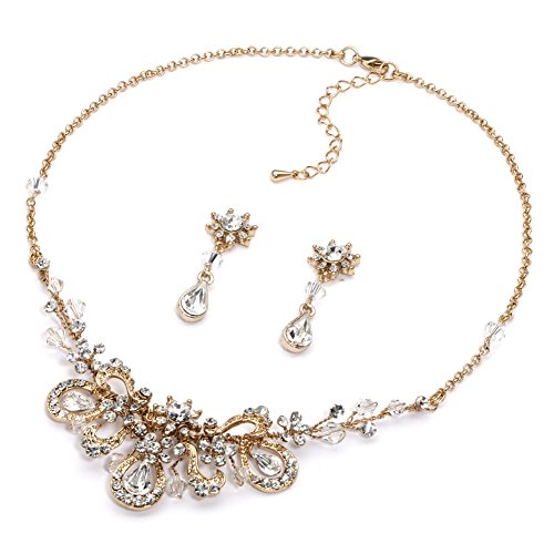 -. Title : USABride Gold-Tone Rhinestone & Crystal Necklace & Earrings, Floral Bridal Jewelry Set 1598-G
