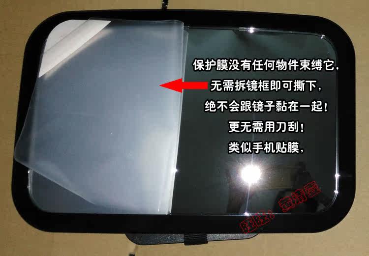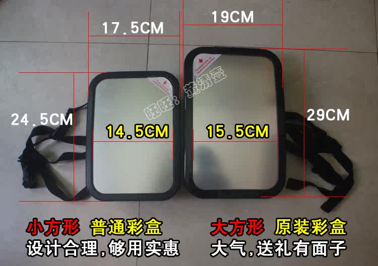 然后宽度,小方形镜框窄些,所以小方形镜面宽度比大方形镜面宽度只少1CM,成像没什么差距.如果宝宝长大了,正向安装了.相反小方形宽度却是优势,因为大方形比遮阳板宽,绑遮阳板太夸张了.小尺寸相对就合适些.可以看看下图,对比下遮阳板。